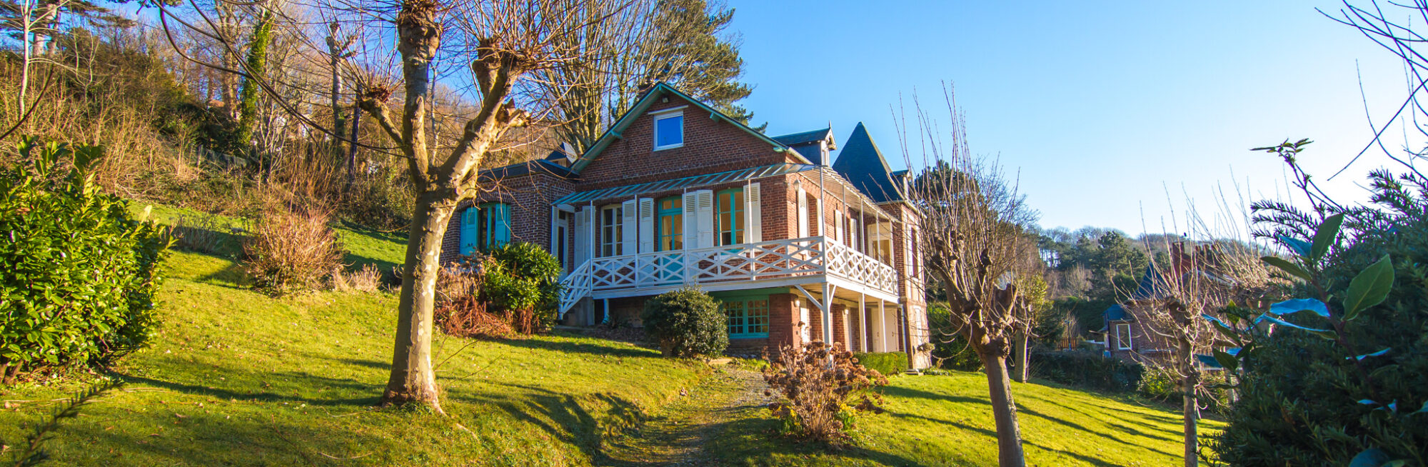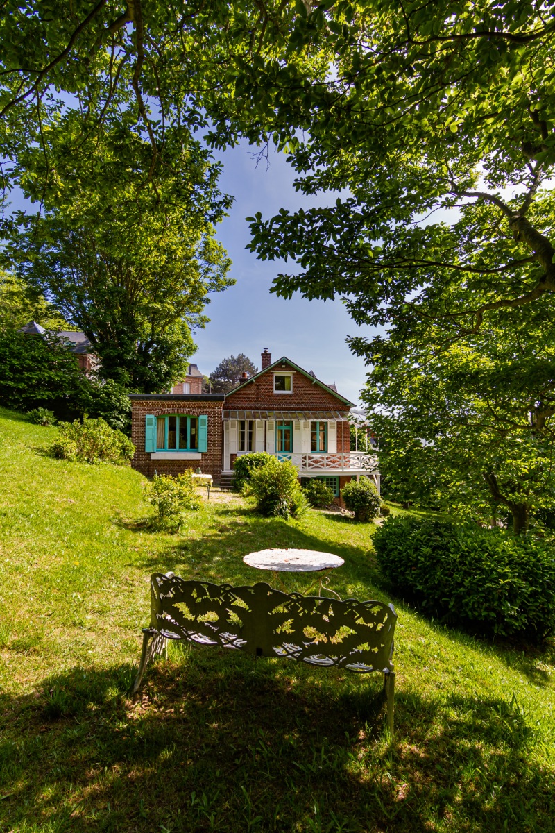 In Veulettes sur Mer (Seine-maritime, Normandië) ligt het “Chalet des Chevrefeuilles” aan een pittoresk laantje op 200 m van zee. Vanaf de veranda heeft u een prachtig uitzicht op de vallei en het kerkje van Veulettes. Het huis is omgeven door een grote besloten tuin (2400 m2) met bomen en zonnig terras.